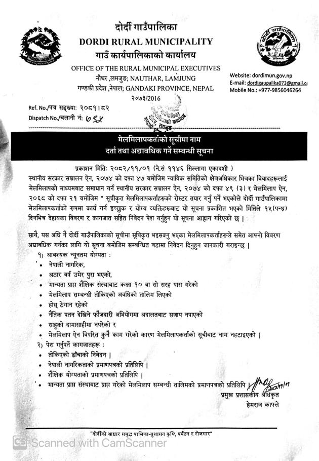 मेलमिलापकर्ता सूचीमा दर्ता तथा अद्घावधिक गर्ने सम्बन्धी सूचना ।