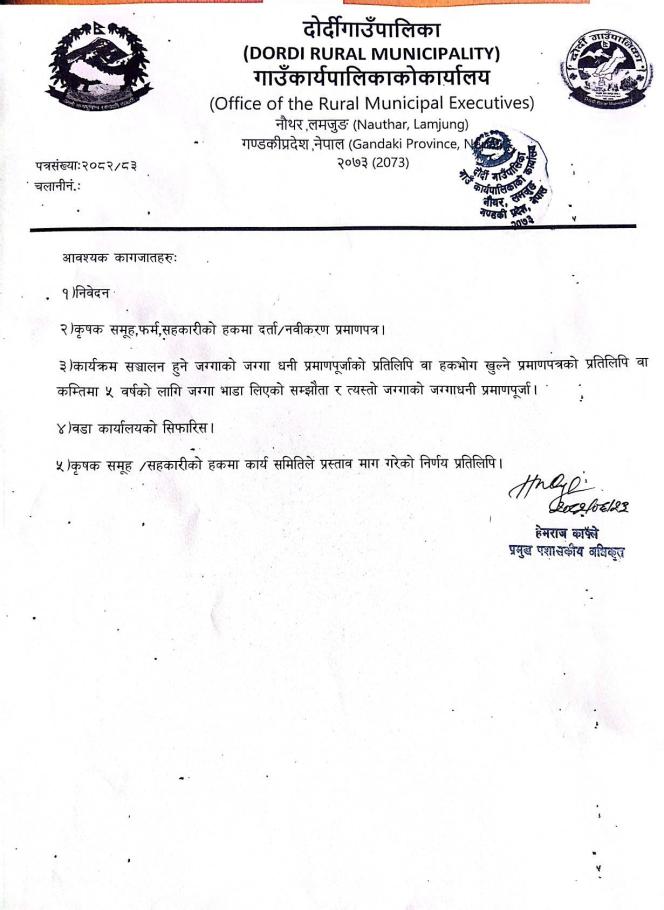 दोर्दी गाउपालिकाको कार्यालयबाट प्रदान गरिने सेवा सुबिधा सम्बन्धि नागरिक वडापत्र ( Citizen Charter)
