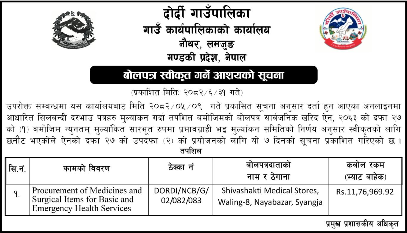 » वोलपत्र स्वीकृत गर्ने आशयको सूचना
